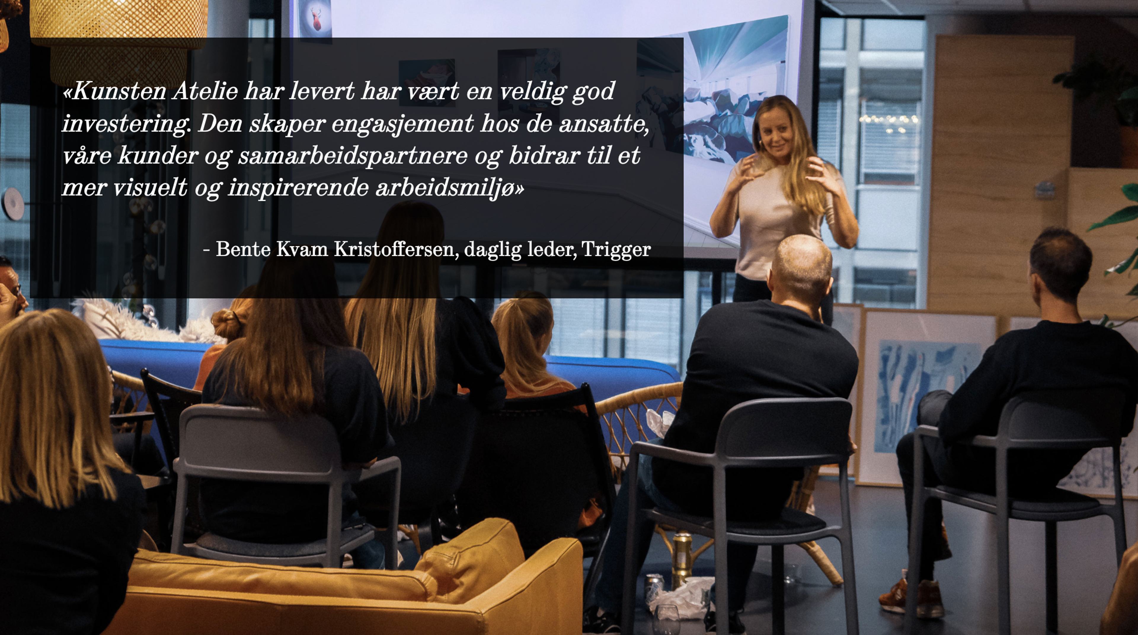 Kunst på kontoret skaper et inspirerende miljø, fremmer produktivitet og samarbeid, og hjelper med å redusere stress. Ikke bare vil kunst forbedre arbeidsmiljøet, men ved å samarbeide med Atelie bidrar du også til å støtte det lokale kunstmiljøet i Norge.