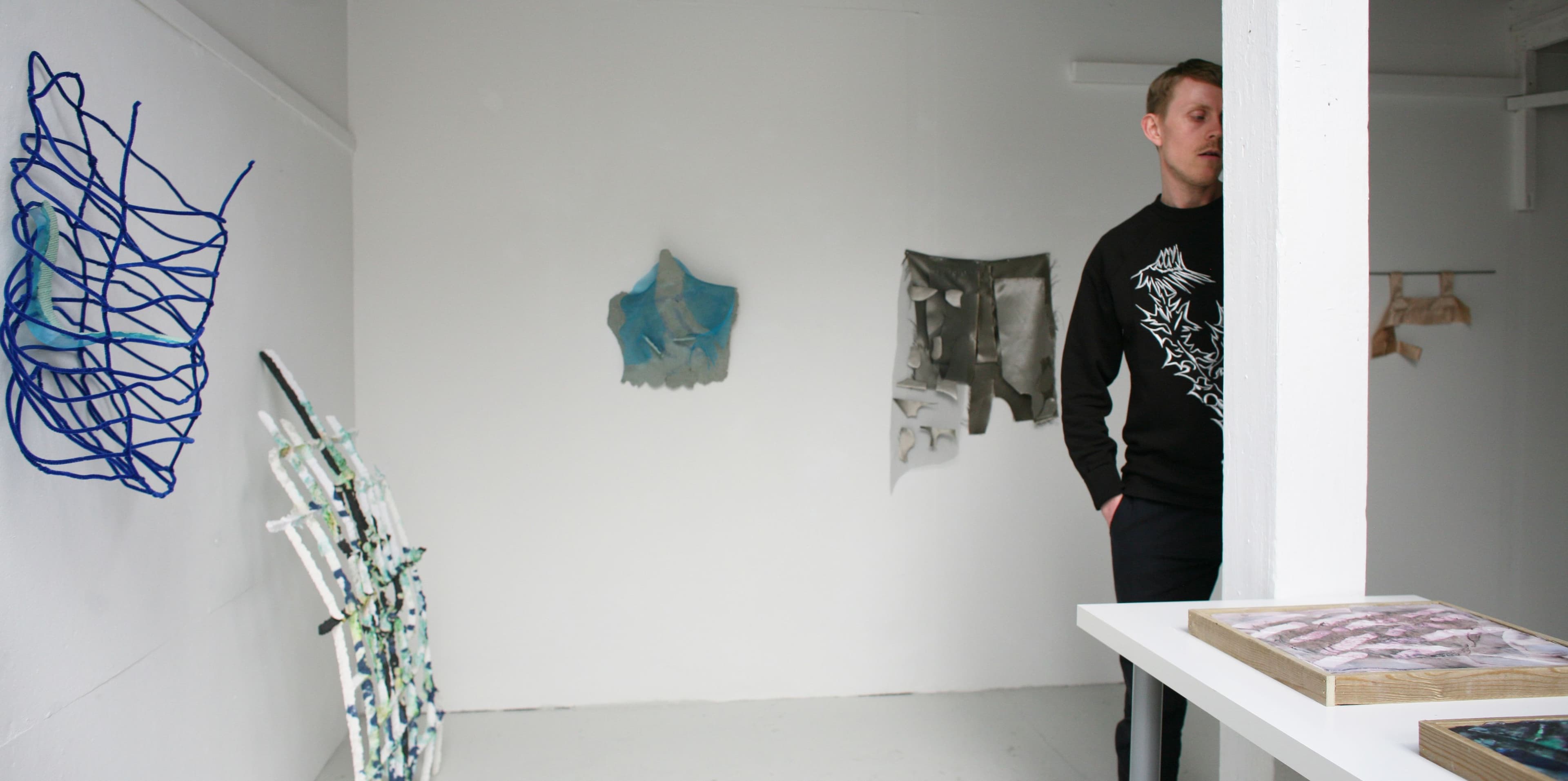 Min viktigste strategi i mitt kunstnerskap er å holde prosessen vidåpen og være i den så lenge som mulig, helst frem til dørene åpner. Jeg lager aldri skisser eller planlegger neste steg, derimot jobber jeg direkte med- og på materialene, legger til eller tar bort, og vurderer hele tiden med blikket om det komposisjonelle sitter.