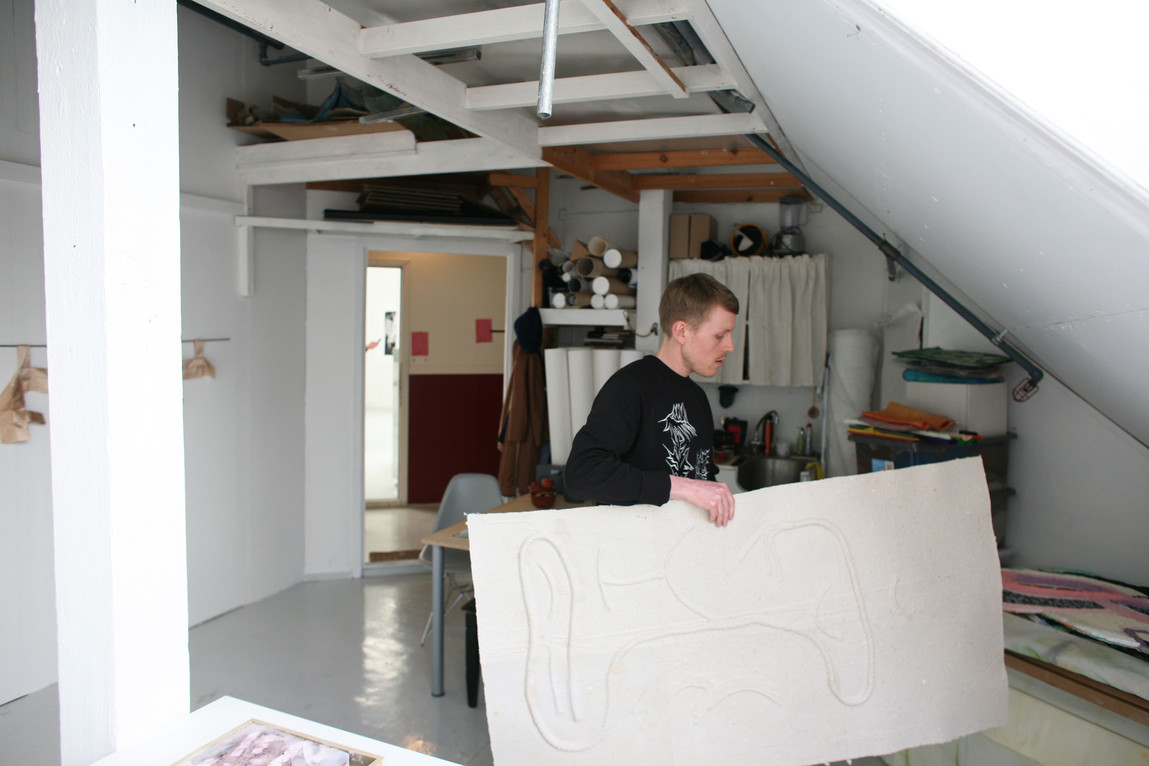 Cato på sitt atelier i Bergen. Foto: Atelier