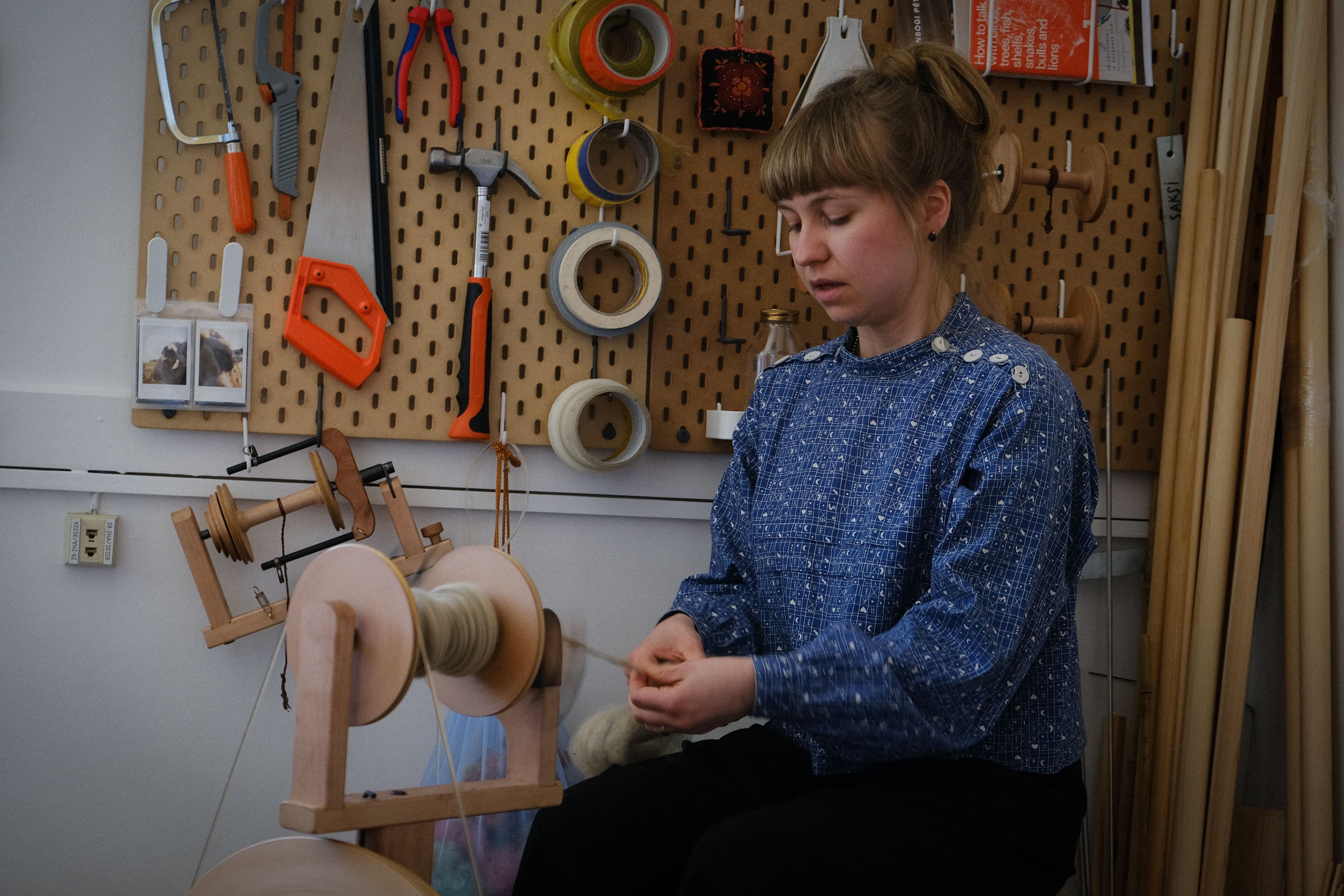 Liilian Saksi (født 1989 i Norrköping) bor og arbeider i Oslo. Hun har studert på Kunsthøgskolen i Oslo med en MFA i Medium- og Materialbasert kunst fra 2017. Arbeidene til Saksi baserer seg på tekstile teknikker som spinning og sprang, med en visuell drivkraft i fargen og et materielt opphav i familiens saueflokk. Flokken bor på foreldrenes gård utenfor Norrköping i Sverige og består av til sammen 22 individer med egennavn. Sprangteknikken som Saksi bruker, er en eldgammel håndverksteknikk der garntråder spennes opp parallelt i en ramme og flettes over i hverandre for hånd.