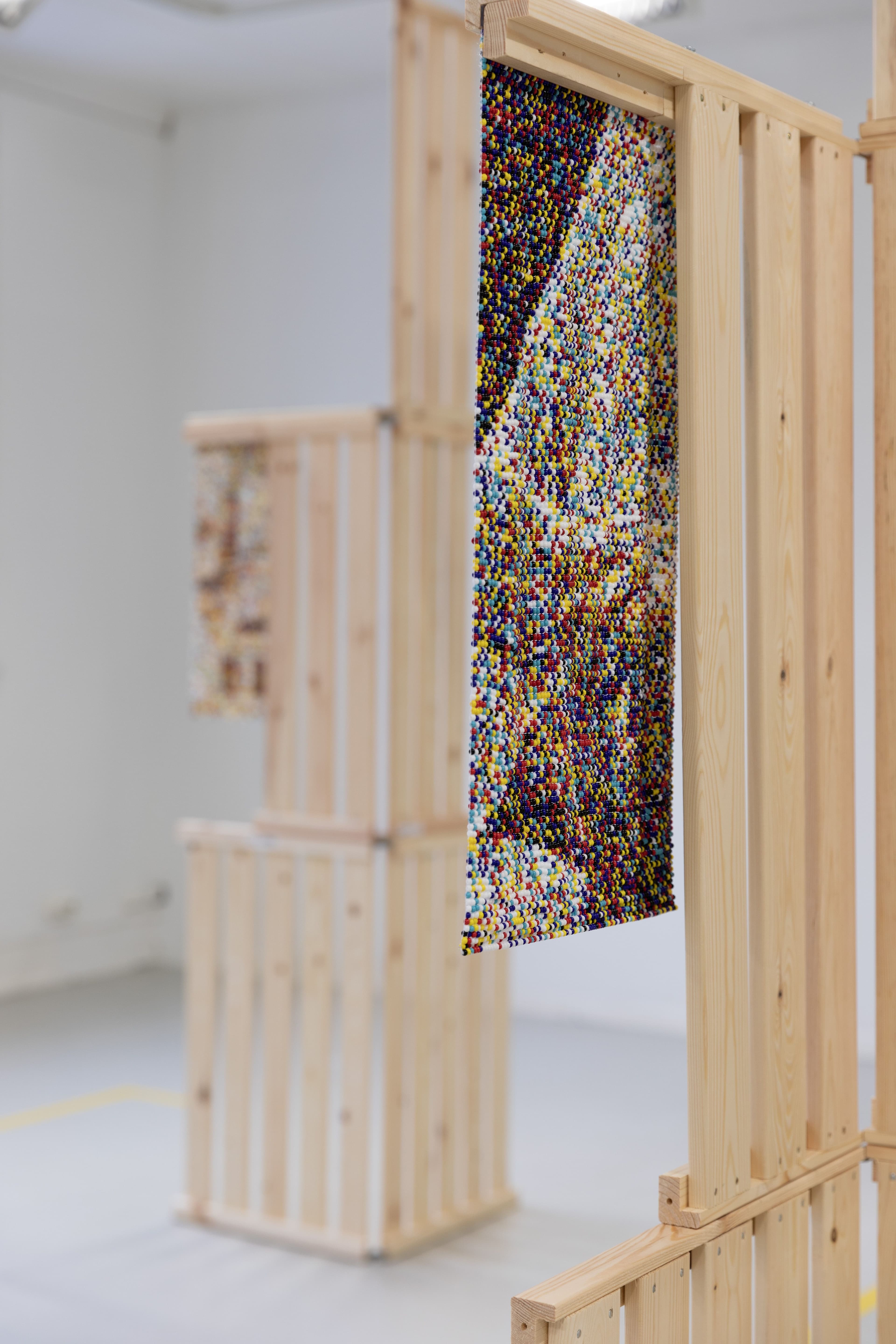 Jag vill lyfta fram Tora Endestad Bjørkheim och arbetet " A functional touch 4". Jag älskar det flimrande färgspelet som uppstår i pärlvävarna! Tora har en beundransvärd teoretisk överblick och en intressant och dedikerad ingång i det textila fältet, där hon ofta låter manuella hantverksprocesser stå i relation till massproducerade ytor. Jag glädjer mig till att se vilken riktning hennes framtida arbeten tar!