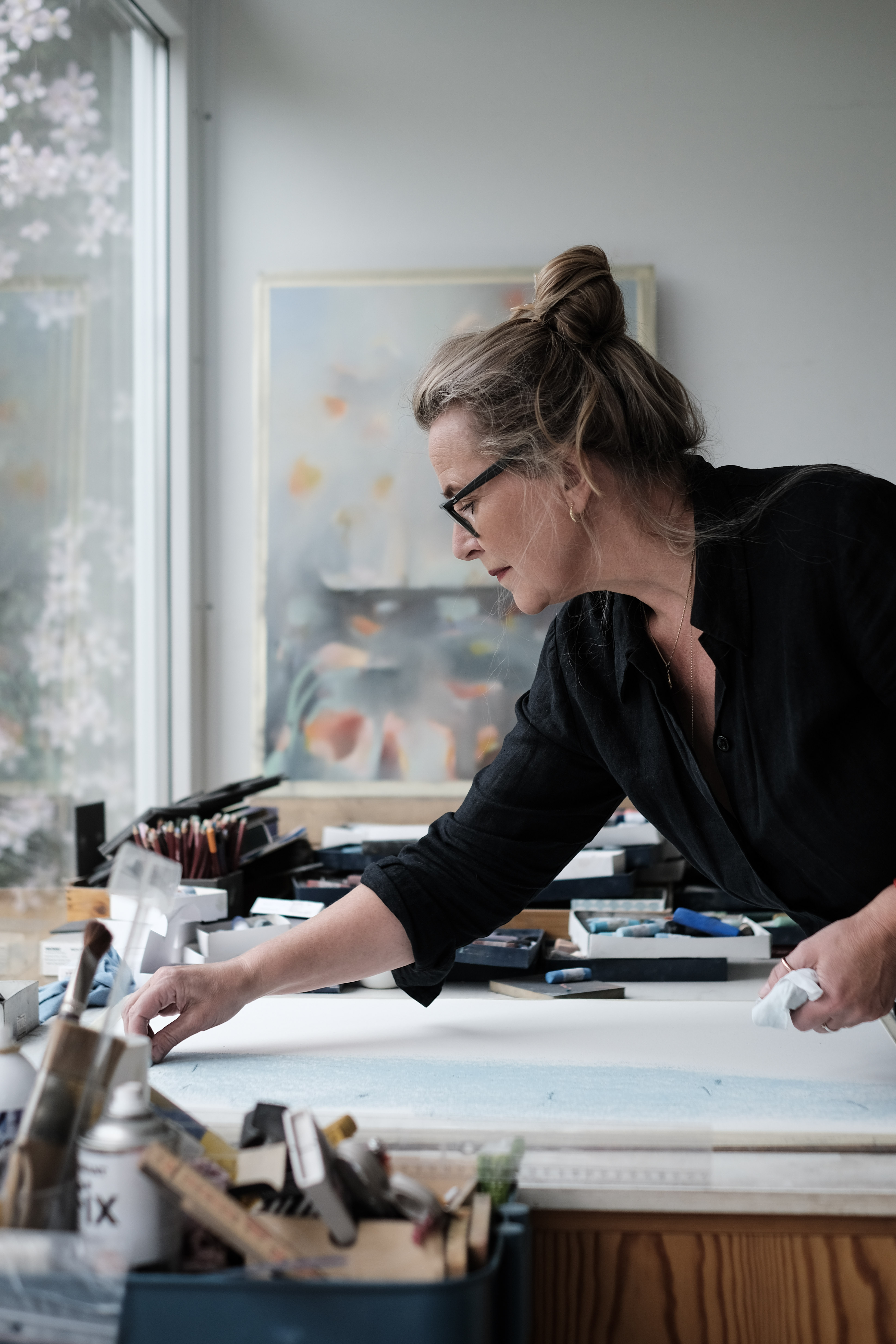 Handmade pastels on 300 cotton paper with deckle edges. This artwork needs the protection of glass.